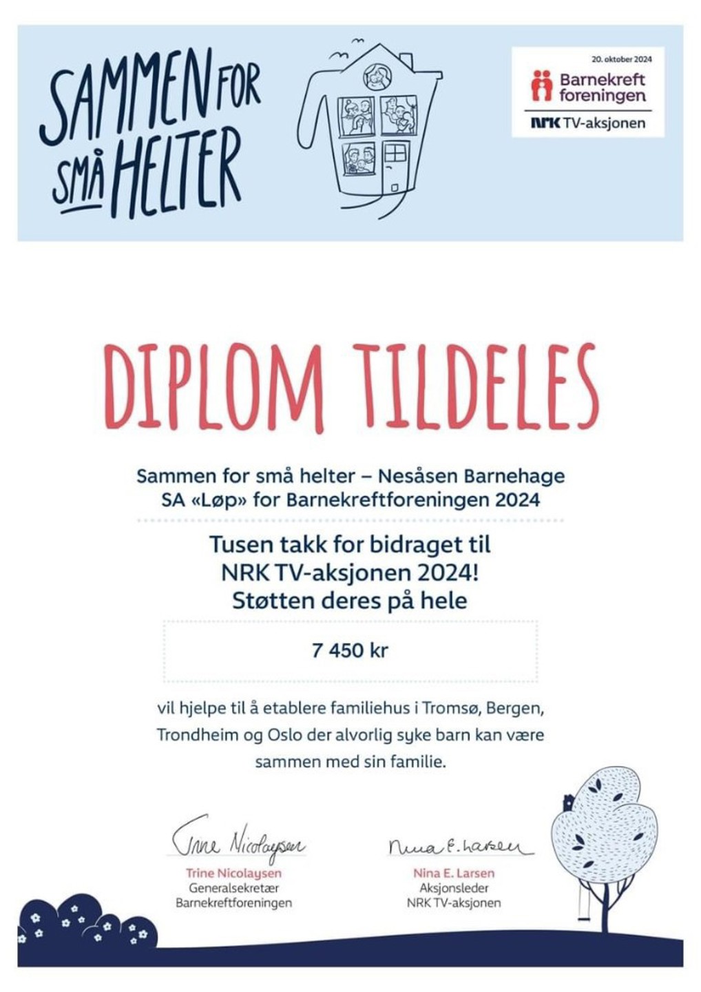 7450 kr til Barnekreftforeningen, TV-aksjonen
