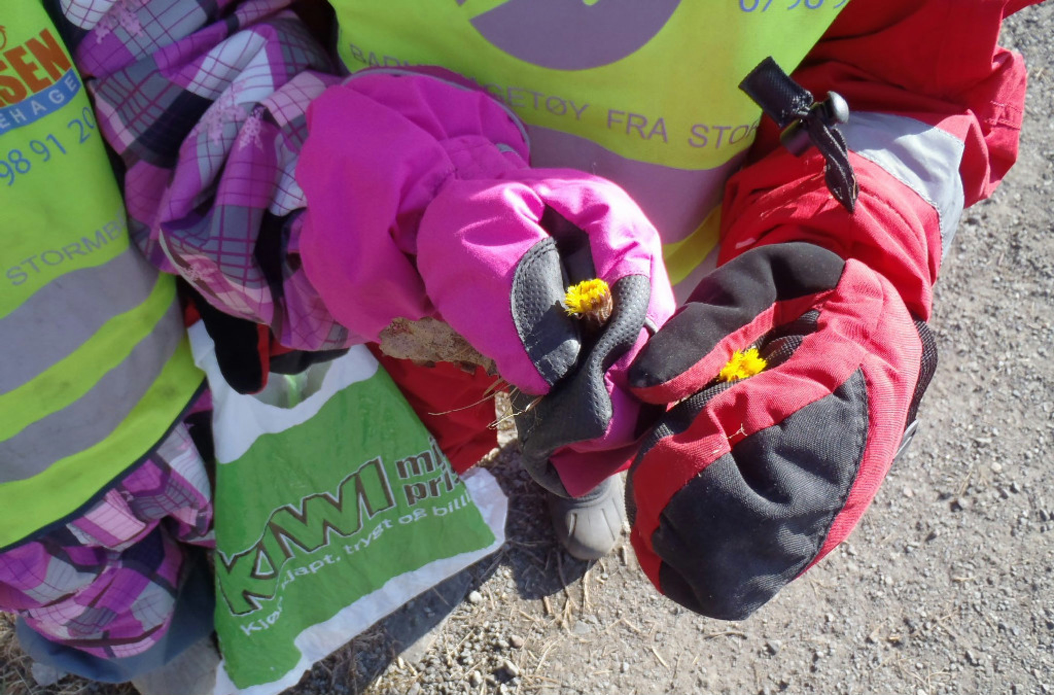 Nå har vi kostet asfalten og tatt frem syklene, til stor glede for barna. Flere barn har også funnet hestehov i veikantene når de har vært på tur. Når snøen smelter, kommer også søppel frem, og snart er vi på søppelplukking-jakt igjen.